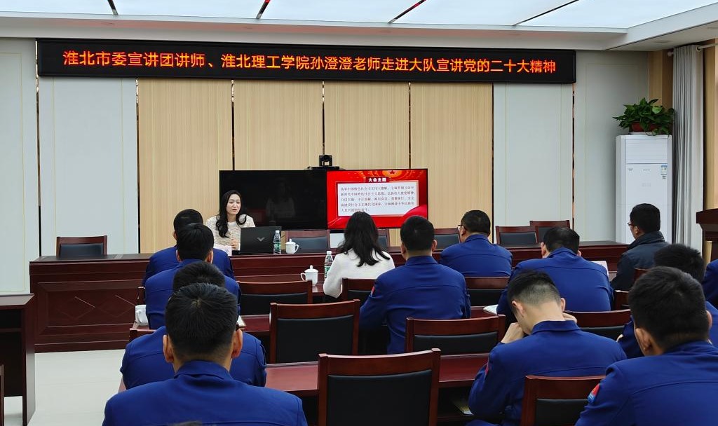 为积极贯彻落实习近平总书记关于“大思政课”建设的重要指示,深入推进社会实践基地共建共享工作走深走实。3月29日下午beat365英国官网网站走进合作共建实践基地相山区消防救援大队与其开展首次合作共建,由beat365英国官网网站孙澄澄老师向大队的各位消防指战员们进行党的二十大报告宣讲,beat365英国官网网站院长助理陈志操、骨干教师白慎志陪同出席,相山区消防救援大队政治教导员芦冬冬主持会议,全体指战员参加宣讲会。