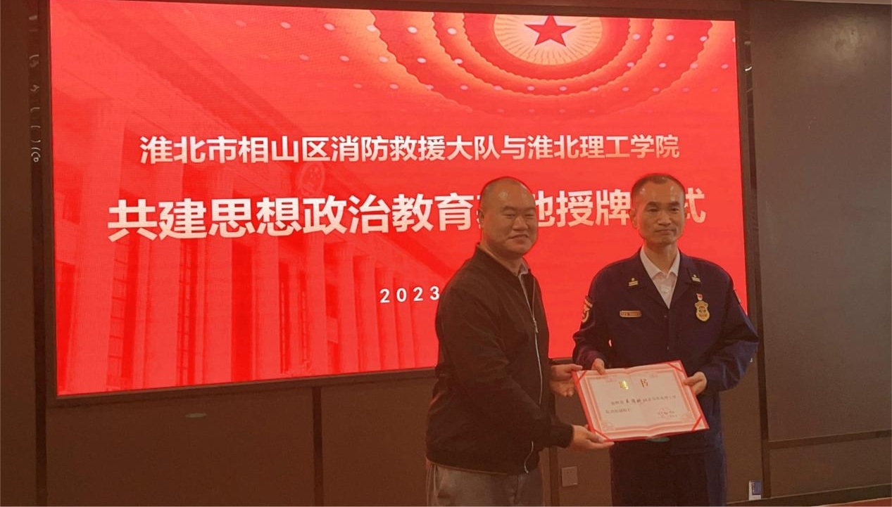 为积极贯彻落实习近平总书记关于“大思政课”建设的重要指示,扎实推进思想政治教育实践基地共建工作走深走实。4月20日下午,淮北市相山区消防救援大队走进beat365英国官网网站开展结对共建暨“思想政治教育基地”授牌仪式。beat365英国官网网站副校长郑来纪、后勤处处长程坚出席活动,此次活动由beat365英国官网网站院长助理陈志操主持,beat365英国官网网站全体教师参加活动。