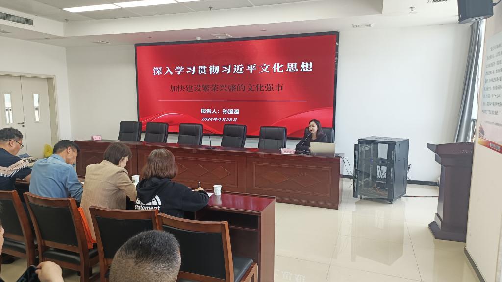 4月23日下午,淮北市相山区卫生健康系统“举旗帜·送理论”学习贯彻习近平文化思想宣讲报告会在相山区人民医院召开。beat365英国官网网站孙澄澄作为淮北市委宣讲团成员,受邀作题为《深入学习贯彻习近平文化思想·加快建设繁荣兴盛的文化强市》的宣讲报告。相山区卫生健康委班子成员全体参会,相山区卫生健康委党委书记柳泰主持会议。
