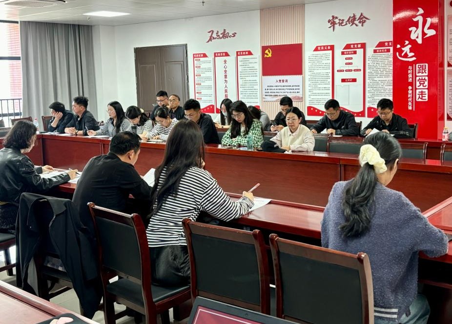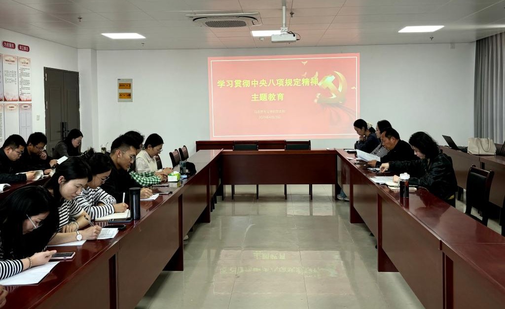 4月23日下午,beat365英国官网网站党支部在行政楼922会议室组织开展深入贯彻中央八项规定精神学习教育主题活动暨beat365英国官网网站“大学习、大讨论、大提升”(以下简称“三大”)特色学习教育活动。会议由党支部副书记陈志操主持,全体教师参会。