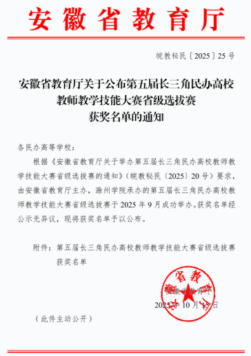 日前,由安徽省教育厅主办的第五届长三角民办高校教师教学技能大赛省级选拔赛结果正式公布。beat365李邦老师凭借出色表现,在众多参赛教师中脱颖而出,取得思政中级及以下职称组三等奖的优异成绩。