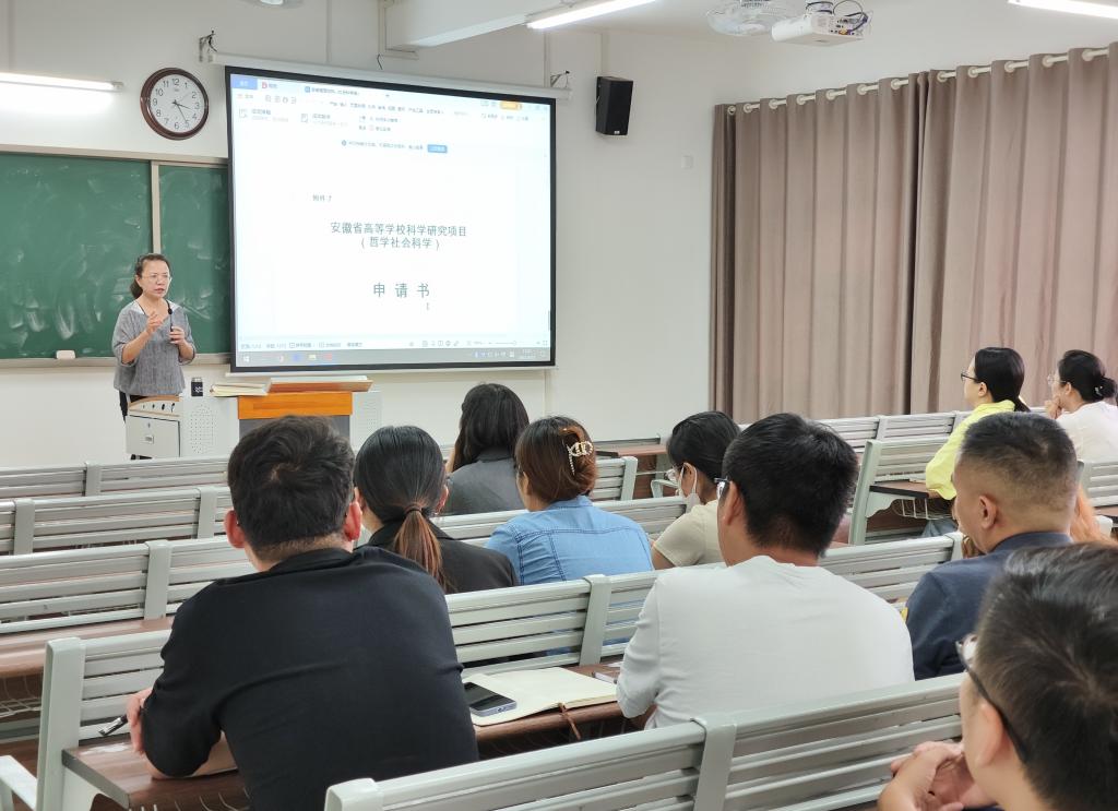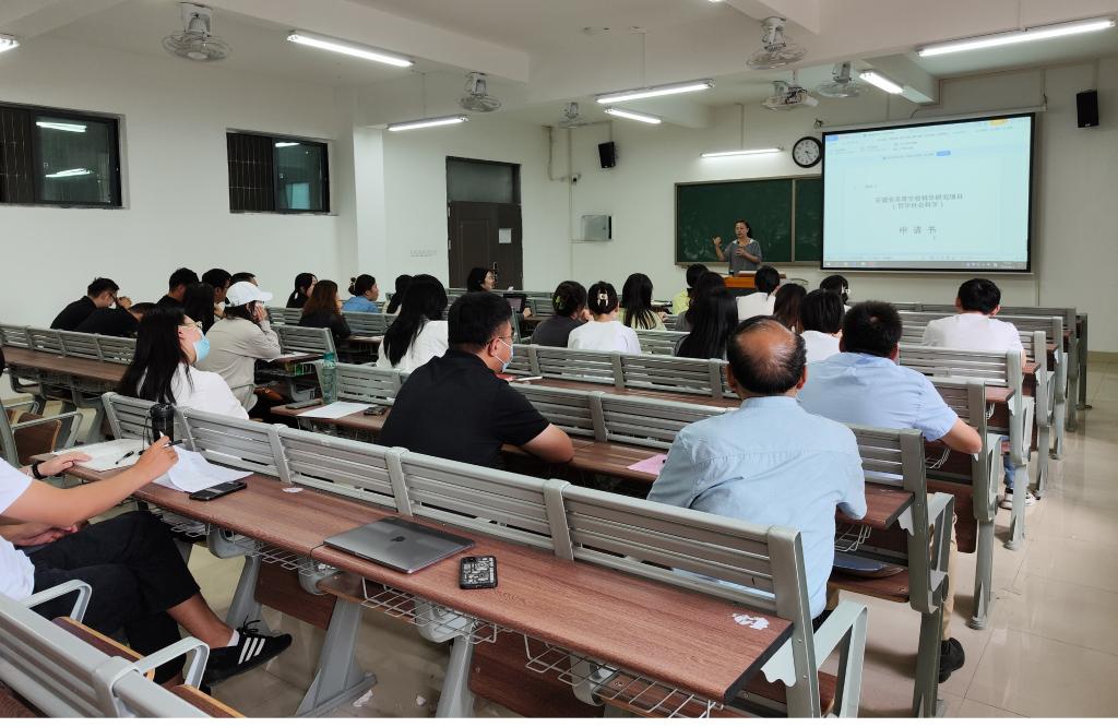 为提升教师科研水平,更快深入了解科研项目申报的变化,确保申报质量,掌握自然科学项目、哲学社会科学项目等申请书的撰写技能,也为了充分调动两院教师申报项目的积极性,beat365英国官网网站和经济管理与建筑工程学院(以下简称两院)于2022年9月21日下午在1号教学楼215教室召开了两院2022年度省级科研项目申报专题培训会。吴玲院长主讲,两院教师参加了此次会议。